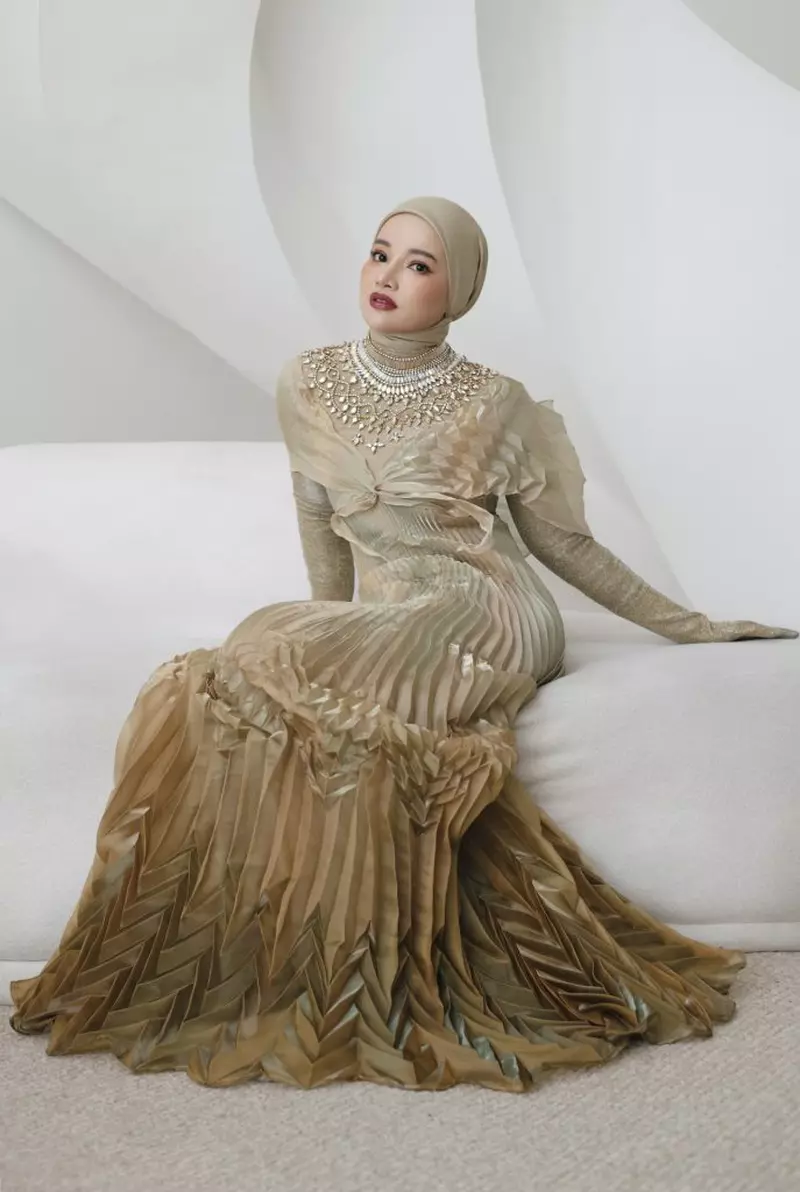 Protagonista editorialului — Dr. Ayu Widyaningrum — se integrează organic în această viziune. Prezența ei nu mută accentul spre o poveste personală, ci amplifică limbajul vizual al colecției. Ea devine nu subiectul narațiunii, ci parte a compoziției — purtătoarea ideii transmise de designer.
