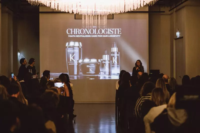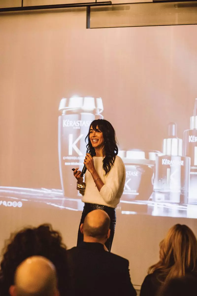 Amber Yopp, președinta globală de brand Kérastase (o prezență foarte puternică, care m-a impresionat cum de puține ori mi se întâmplă…), a formulat una dintre cele mai clare idei ale prezentării atunci când a făcut o paralelă între femeile anilor 50 și femeile de azi. În trecut, după o anumită vârstă, aproape că exista o convenție socială nescrisă: femeile își tundeau părul. Părul lung devenea impropriu, nepotrivit, poate prea seducător, poate prea tineresc pentru o femeie care trebuia să accepte, elegant, că a intrat într-o altă etapă a vieții. Astăzi, regula aceasta nu mai funcționează. Femeile nu doar că nu mai simt nevoia să se conformeze, dar își lasă părul lung tocmai ca o declarație de libertate, de stil și de continuitate a propriei identități.