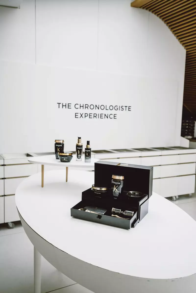 Iată că și în privința părului folosim același limbaj contemporan al frumuseții: diagnosticare, personalizare, date, scoruri, instrumente… Dar, dincolo de acest strat tehnologic, lansarea a vrut să construiască și o dimensiune senzorială, emoțională, de ritual. Un hairstylist invitat să vorbească despre noul protocol a descris experiența Chronologiste ca pe un head spa de lux, gândit pentru femeile care nu mai vor doar culoare, tuns sau styling, ci o pauză reală. O oră în care timpul e suspendat, o experiență care combină frumusețe, știință și plăcere. Cinci pași: șampon anti-aging, mască cu perle caviar, masaj cu presopunctură inspirat din cultura asiatică, ulei pentru lungimi, iar apoi vedeta lansării: Overnight Youth Serum, cu alga Ochrophyta + Pro-Xylane™, pentru continuarea ritualului acasă. Mă aflam la câteva ore după acest protocol (unde am și testat noile produse din cadrul gamei Chronologiste, Youth Caviar Ritual – cum ziceam, un protocol disponibil exclusiv în saloane – și Serumul de noapte Overnight Youth Serum) și nu doar că eram pe un mic nor de relaxare, dar îmi plăcea la nebunie cum îmi arăta părul, cum lucea, arăta sănătos și viguros.