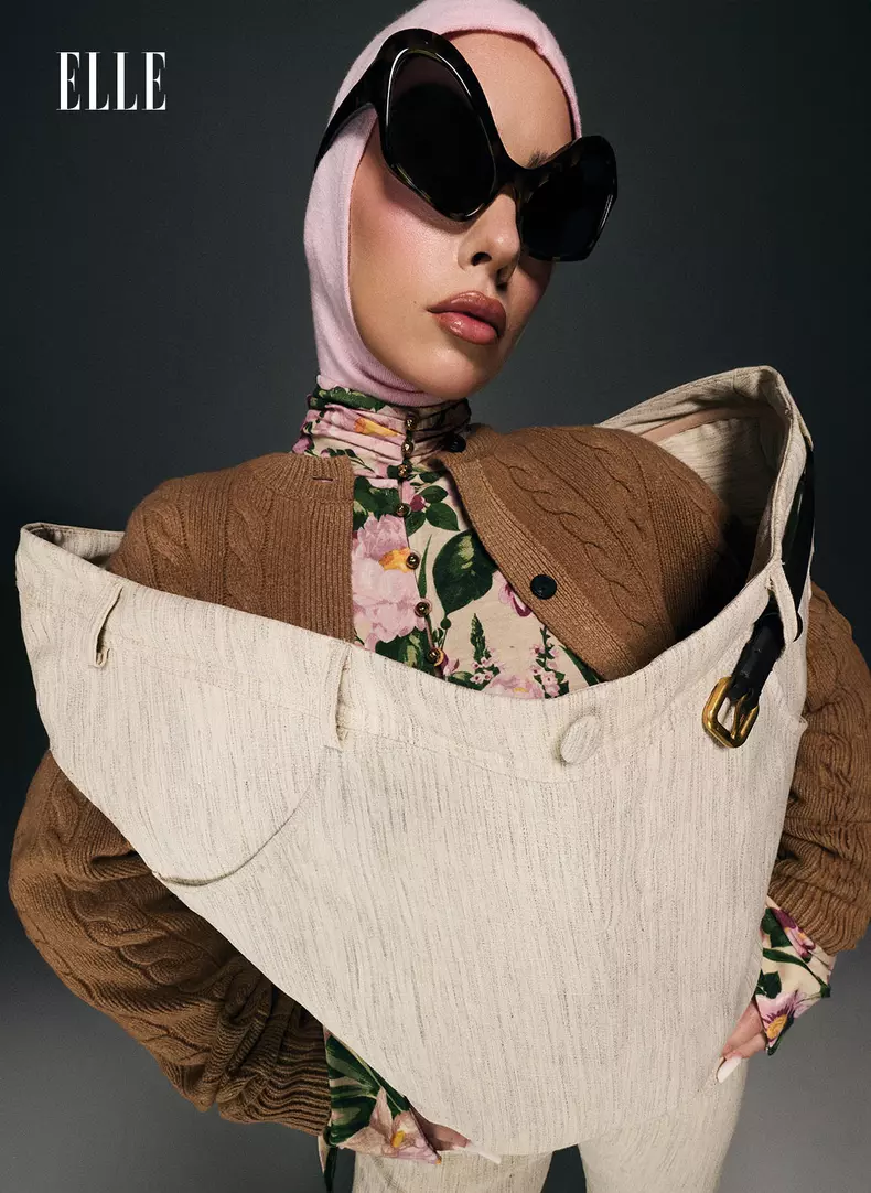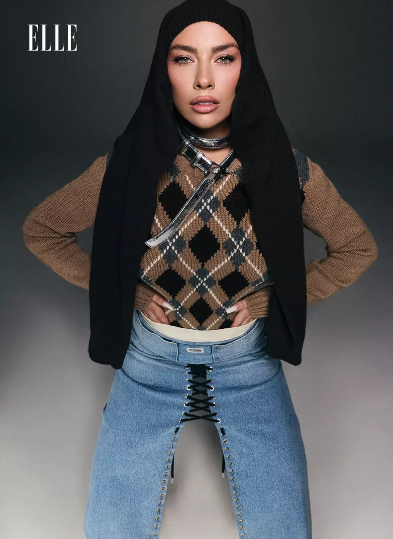 Jo poartă pulover Prada, magazinul Mengotti, pulover și colanți Ami Amalia; fustă Pif Stephano; curea Courrèges, magazinul Aparterre.