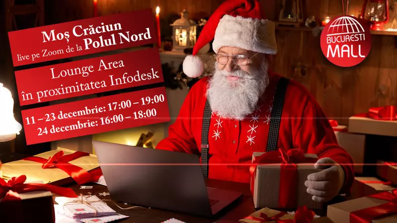 Pentru că, într-un an cu atâtea provocări, cei mici nu se puteau lipsi de întâlnirea cu Moş Crăciun, acum pot vizita satul acestuia în mallul amenajat ca în poveste, cu decoraţiuni magice. Cu toate că Moşul este la Polul Nord, ocupat cu pregătirea cadourilor, el își va face timp în fiecare zi să intre în direct pe Zoom și să asculte dorinţele cât mai multor copii. Așadar, până pe 24 decembrie, Satul lui Moș Crăciun îl va avea ca oaspete virtual în intervalul orar 17.00 – 19.00, cu excepția zilei de Ajun – atunci, prichindeii se vor putea întâlni cu Moșul între orele 16.00 – 18.00.