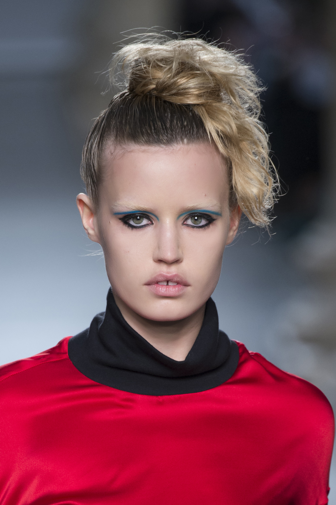 Avem de-a face cu multe coafuri de sezon de inspiratie retro, asta e sigur! Ne plac aceste ondule plate, de tipul Marcel waves – un stil de coafura din anii ’20 – , stilizate doar partial, pe conturul fetei, ceea ce fac look-ul lejer. Am vazut acest hairstyle la multi designeri: Blumarine, Stella McCartney, Salvatore Ferragamo.