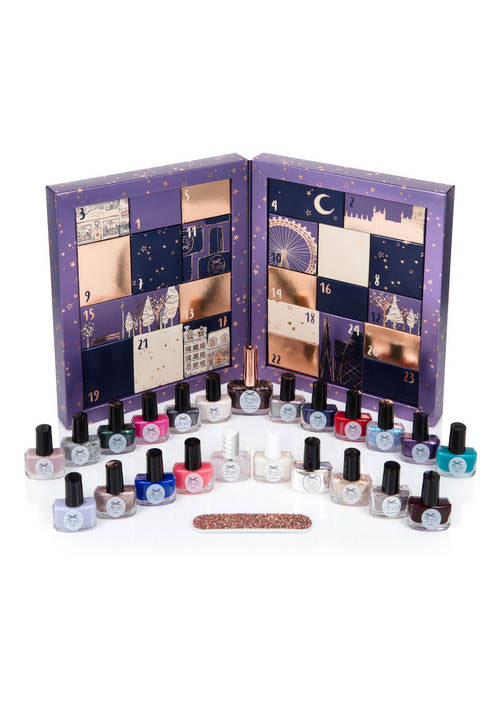 Setul contine 18 mini lacuri de unghii; 1 lac de unghii - format mare; 1 cadou surpriza; 2 mini produse de ingrijire a unghiilor si 2 lacuri de unghii top coat.