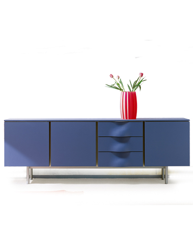 Bufet Aldous, producator Acerbis, designer Giorgio Gurioli, cu structura din metal lacuit argintiu, usi si top lacuit mat, disponibil in diverse culori, Kyros Interiors