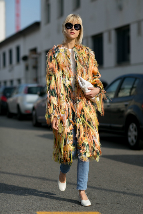 Ce zici daca fortezi vremea pentru o ultima oara cu niste pantofi in cel mai optic alb si asortezi totul cu o jacheta cat se poate de disco?