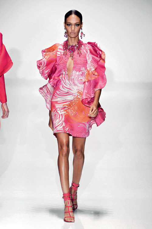Rosul este de asemenea o culoare pe care designerii o exploateaza dintotdeauna, iar silueta spectaculoasa semnata Gareth Pugh merita luata in seama.