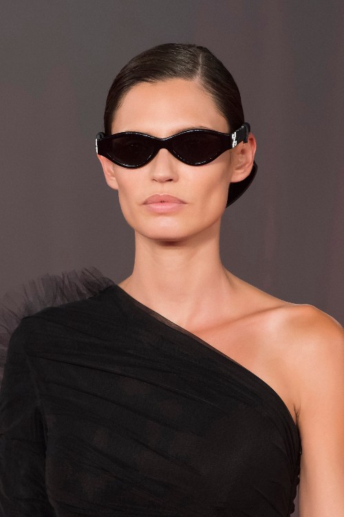 Nu este vorba despre modelul clasic de cat eye, cu care ești obișnuită, este vorba despre unul reinterpretat de către Nicholas Ghesquiere (Louis Vuitton) și Miuccia Prada. Lentilele sunt slim și foarte lunguiețe, abia acoperă privirea. Dar efectul lor este maxim datorită grafismului extrem de vizibil. Încă ceva: acest model de ochelari de soare poate fi purtat și cu rochii couture!