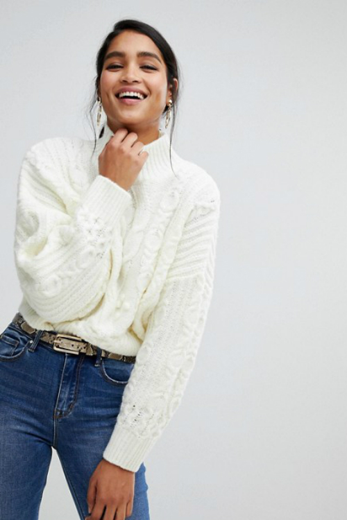 Pulover cu model împletit oversize, Bershka, 119,90 lei