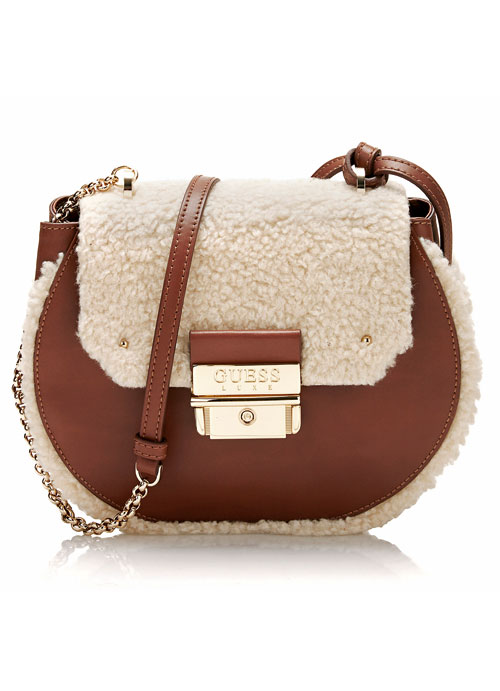 Geanta din piele si blana naturala, Guess, cu pretul la cerere