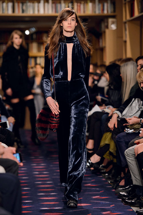 O varianta extrem de hot este sa porti catifeaua pe o silueta de inspiratie latino, cum este acest look Lanvin. Nu te sfii sa porti o fusta ampla, dar pastreaza o parte a corpului, cum este piciorul, descoperita, pentru a contracara efectul greoi al acestui material. Daca gasesti si o curea cu ciucuri, tot ce-ti ramane de zis este Olé!