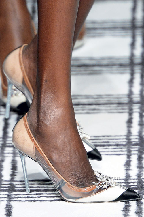 Grafic, cu elemente din silicon transparent si aplicatii din cristale, modelul Balenciaga insumeaza toate calitatile pentru a se califica la categoria „pantof-bijuterie“. Fa un mic exercitiu de imaginatie si gandeste-te cum ar arata cu cea mai clasica tinuta din stofe gri. Noi asa iti recomandam sa ii porti, pentru ca ei sa iasa cat mai mult in evidenta!