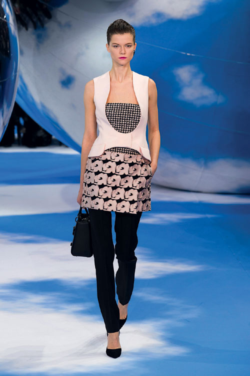 Elegant: Raf Simons iti propune un exercitiu de styling relativ simplu, cu piese vestimentare care sunt sigura ca se regasesc deja in garderoba ta. Pana la urma, toate avem o pereche de pantaloni clasici negri si o rochie din matase cu imprimeu grafic bicolor (daca nu, vei gasi niste modele superbe la H&M, Zara sau Max Mara). Pentru a pastra o nota serioasa de eleganta iti recomand sa le porti cu o pereche de stiletto ultra-clasici – vor adauga un plus de lungime binevenita picioarelor. Un sacou impecabil si gata, vei fi pregatita pentru orice intalnire business la nivel inalt! P.S. O pereche de tenisi Vans monocromi va transforma instantaneu aceasta tinuta intr-una casual, dar cat de poate de stylish!