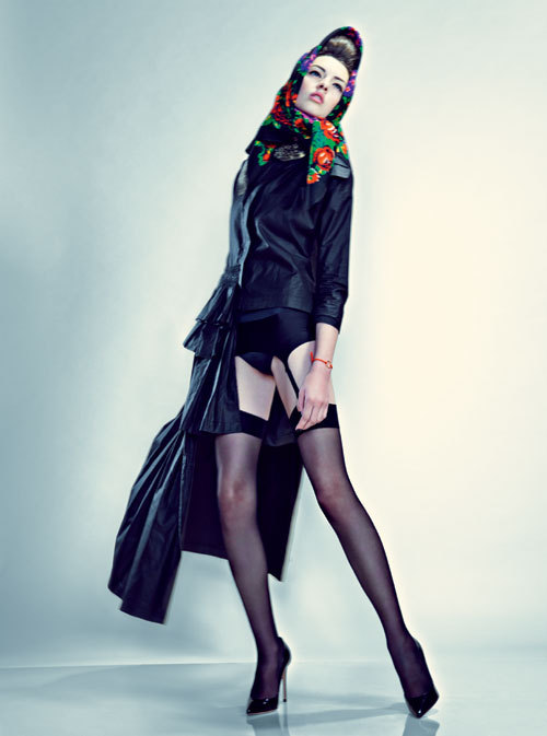 Pulover din lana, Isabel Marant, 1.965 lei, The Place Concept Store; fota traditionala, Muzeul Taranului Roman, 370 lei; colier metalic, Emilio Pucci, 2.669 lei, magazinul Victoria 46 si www.victoriaonline.ro; curea din piele, Peachoo&Krejberg, 1.380 lei, magazinul Entance, ciorapi din matase, 106 lei si portjartier, 296 lei, ambele Wolford, palarie cusma din blana, Carmen Secareanu, 183 euro; inel din aur cu snur din material textil, Irina Marinescu, 150 euro (in toate imaginile).