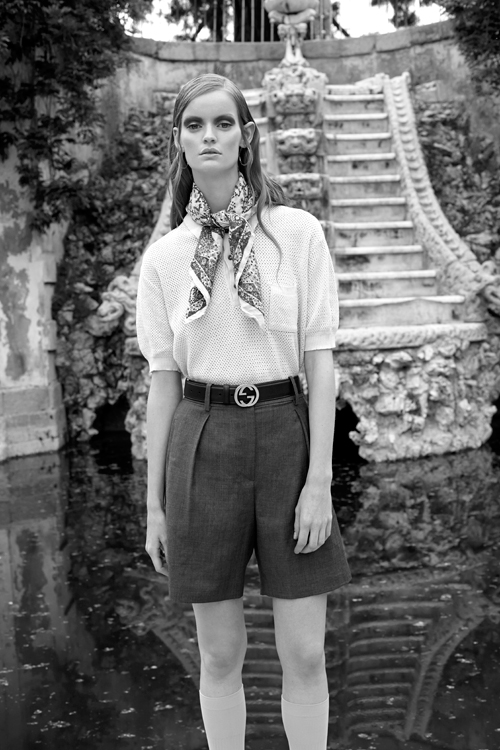 Pantaloni vintage Isabel Marant, curea Gucci, sosete Falke, esarfa vintage Hermes, tricou vintage Ermenegildo Zegna, inele Jennifer Fisher.