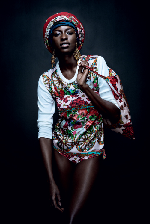 Esarfe din matase (pe cap), 850 lei fiecare, si geanta din piele, 3.200 lei, ambele Roberto Cavalli; ochelari din plexi, cu barete imbracate in piele de sarpe, Linda Farrow Luxe, 460 euro, www.sunglasscurator.com; vesta din tafta si lana peliculizata, ZARUG, 970 lei; sutien, Herve Leger, 619 lei, magazinul Victoria Gallery; boxeri din matase, brodati integral cu paiete, Blumarine, cu pretul la cerere, magazinul J. Kristensen; sort din piele, Victoria Tomas, 2.271 lei, magazinul Entrance.