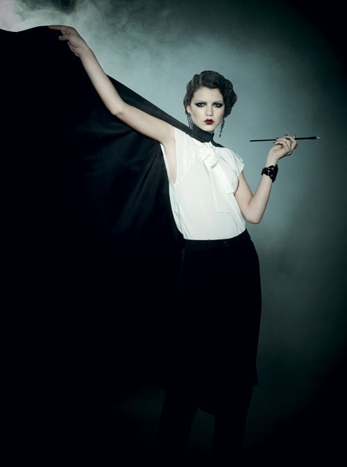 Capa din matase, Yves Saint Laurent, 4.535 lei, si cercei din cristale naturale, Roberto Cavalli, 1.969 lei, ambele magazinul Victoria 46; bratara din cristale naturale, Tom Ford, 6.100 lei, magazinul Casa Frumoasa; camasa din matase, 1.350 lei, si pantaloni din voal de matase, 5.100 lei, ambele Moschino.