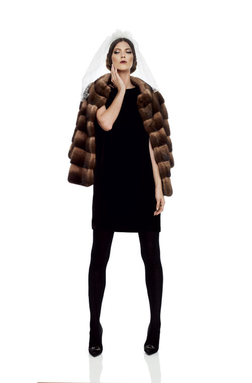 Pulover din casmir si matase, 3.380 lei, fusta din matase, 3.110 lei, si pantofi din satin de matase si cristale naturale, 3.530 lei, toate Dolce&Gabbana; dresuri din lana, 2.130 lei, si geanta din piele, 8.170 lei, ambele Fendi, toate magazinul Mengotti.