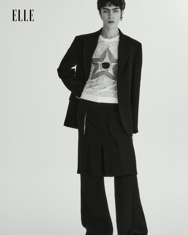 Sacou Dion Lee, pantaloni și fustă Victoria Beckham, magazinul Aparterre, top Alexandra Șipa, pantofi Prada, magazinul Mengotti, cercel VintageBazar.ro & VintageLady.ro.