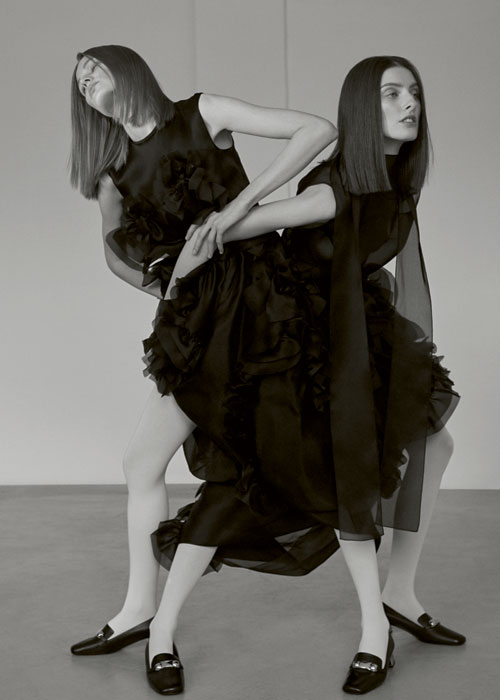 Maia poartă pulover din lână, 1.229 lei, și pantaloni din velur, 989 lei, ambele Weekend Max Mara, ciorapi Calzedonia, 26,90 lei, și pantofi din piele Chanel, cu prețul la cerere. Iulia poartă pulover din bumbac, Michael Michael Kors, 825 lei, magazinul Sport Couture, pantaloni din velur, Weekend Max Mara, 989 lei, ciorapi Calzedonia, 26,90 lei, și pantofi din piele, Valentino, cu prețul la cerere.
