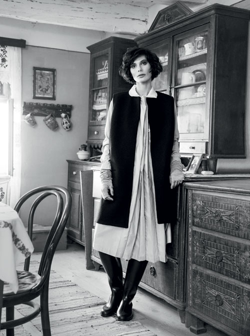 Dessous din matase, Zadig & Voltaire, 569,40 lei, Victoria Gallery, pulover din lana, 980 lei, si palton din stofa de lana, 1.380 lei, ambele Pas du Tout, fular din lana, Burberry, 2.140 lei, cizme din cauciuc, Decathlon, 69 lei (in mai multe imagini).