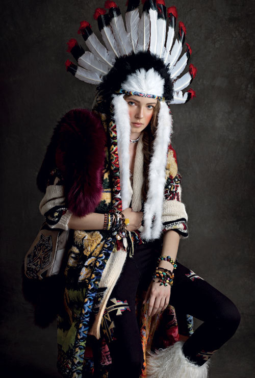 Pulover din lina, 2.999 lei, pantaloni din bumbac, 1.839 lei, si geanta din piele velur, 3.469 lei, toate Isabel Marant, magazinul Victoria 46; vesta realizata din material de carpeta, Sophia de Romania, cu pretul la cerere; guler din blana de vulpe, Gucci, 8.360 lei; cizme din piele si blana de capra, Pollini, 4.050 lei, magazinul Distinto; latitar din margele, 70 lei si bratari din margele si lemn, cu preturi cuprinse intre 7 si 32 lei, Galeria de Arta Taraneasca din cadrul Muzeului National al Taranului Roman (in toate fotografiile); bratara din otel, Dolce&Gabbana, 2.050 lei, magazinul Mengotti; accesoriu din pene, www.magazinuldecadouri.ro.