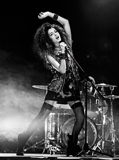 Salopeta din dantela, Amsterdam Sex Shop, 100 lei; camasa din denim, Zara, 99 lei; haina, 6.599 lei, si bentita din piele cu tinte aplicate, 1.759 lei, ambele Givenchy, magazinul Victoria 46, botine din piele, Pierre Hardy, 3.835 lei, The Place Concept Store, manusi din dantela, Depot 96, 47 lei