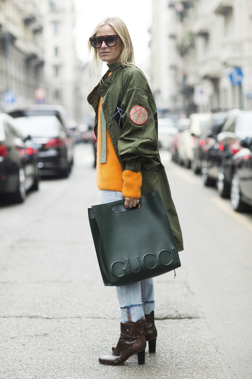 Mixeaza o parka voluminoasa, cu un pulover de un portocaliu fluo si vei vedea cum tinuta ta va capata brusc personalitate.
