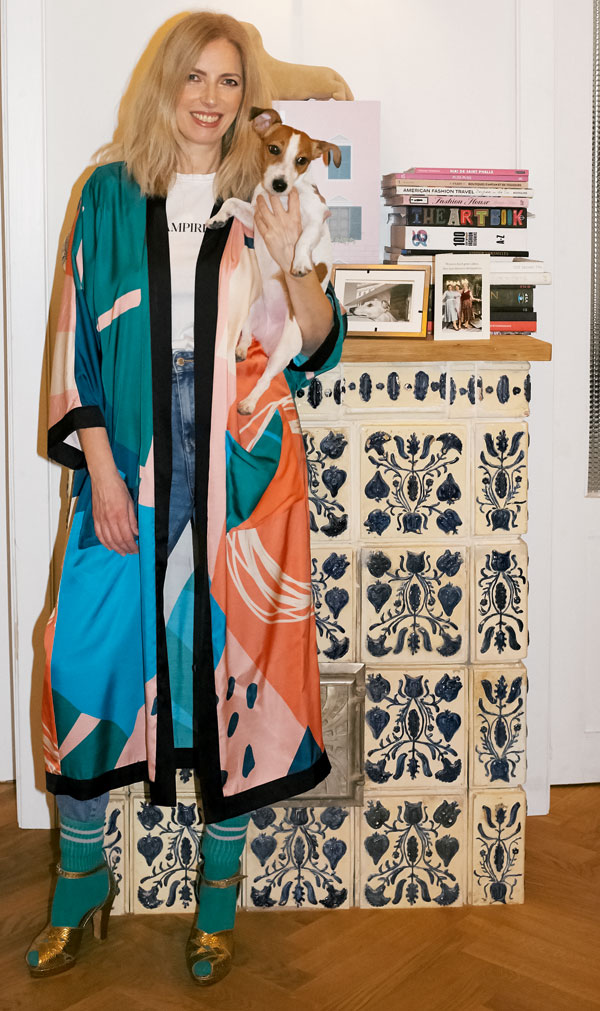 Noemi poartă kimono Smaranda Almășan, tricou H&M x The Vampire’s Wife, jeans MOM de la Mark’s & Spencer, ciorapi Peek & Cloppenburg și sandale Malene Birger.