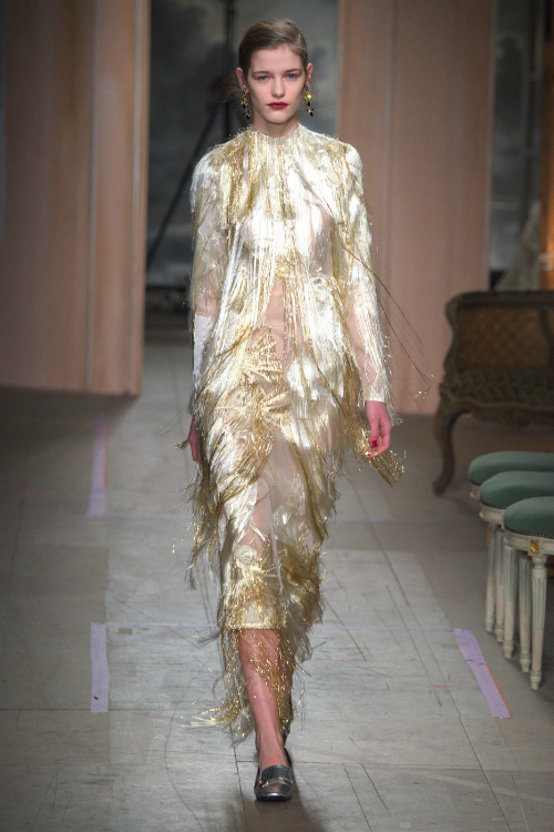 Cunoscut pentru rochiile feerice, designerul Erdem Moralioglu aduce un aer fresh pentru tinutele de seara cu insertii metalice care sunt parca destinate pentru serile petrecute pe ringul de dans.