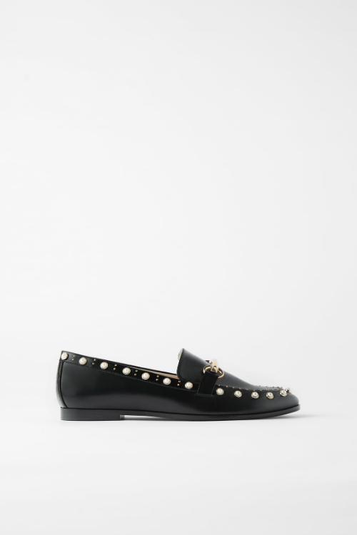 Mocasini cu aplicații tip perle și ținte, Zara, 199,90 lei
