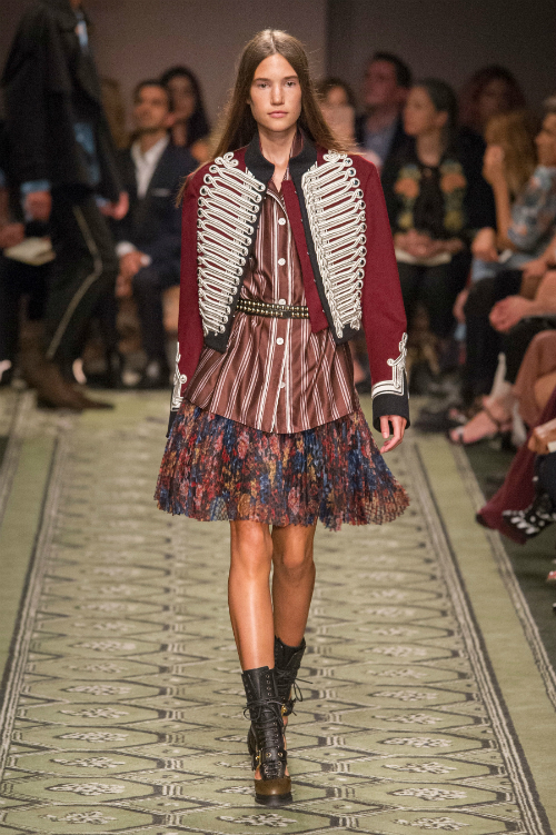 Christopher Kane ne propune lookuri de o anumita eleganta si cu un aer sofisticat, precum aceasta rochie plisata intr-o culoare metalica, insa, intotdeauna with a twist – in acest caz, purtata cu una dintre cele mai controversate forme de incaltaminte: Crocs.