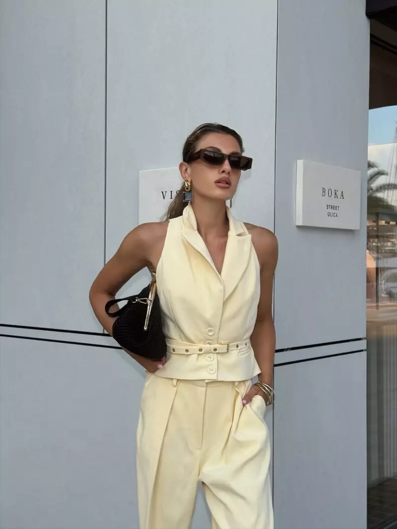 Acea nuanță cremoasă și luminoasă de galben untos e peste tot, de la rochii sau fuste la unghii, genți sau topuri baby tee. E perfectă pentru vară și conferă outfit-urilor un look soft.