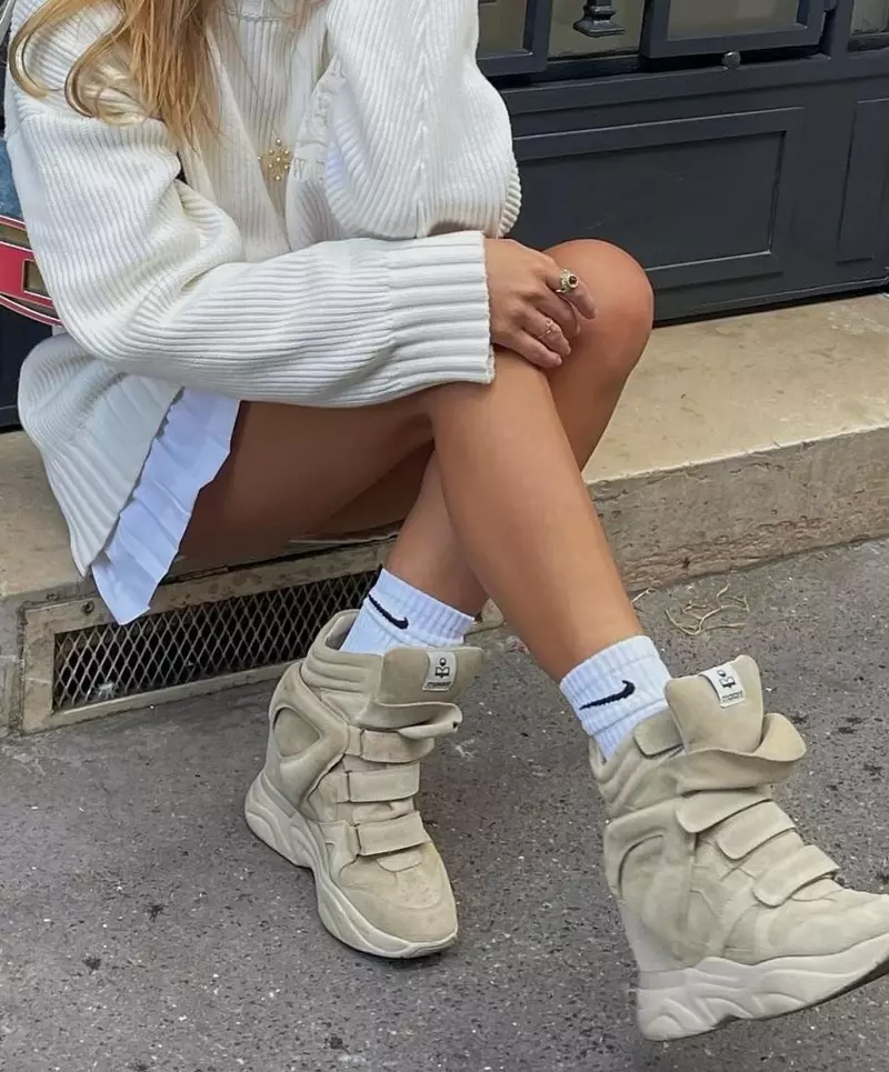 Sneakerșii cu acel toc ascuns, iconici pentru estetica Isabel Marant, au revenit în trend și sunt din nou peste tot pe TikTok. Îmbină confortul cu o notă subtilă de eleganță, și sunt preferați de cei care vor un pic de înălțime fără să renunțe la vibe-ul casual. Se poartă cu fuste, rochii sau pantaloni lungi sau scurți și, da, încă arată cool.