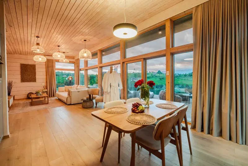 Eden Hill nu impresionează prin opulență, ci prin atenția la detalii și simplitate. Din primnul moment am remarcat cele trei vile construite din lemn scandinav, minimaliste, dar primitoare. Ferestrele mari te fac să te simți parte din peisajul de jur împrejur, iar fiecare colț are ceva care te face să te oprești: lumina caldă care pătrunde prin ferestre, tăcerea care devine aproape tangibilă, mirosul discret al pădurii. Conceptul „Adults Only” nu e despre a exclude pe cineva, ci despre a crea un cadru în care liniștea și prezența să fie prioritare.