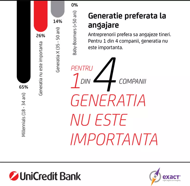 Candidatii pentru un job stabil intr-o industrie creativa, insa, trebuie sa raspunda unor criterii destul de complicate. Asta pentru ca angajatorii din domeniile creative (2 din 3 companii) prefera, in general, candidatii tineri, din generatia milenialilor (oameni intre 18 si 34 de ani, care au crescut cu Internet si stiu sa il valorifice instinctiv, conectati si sensibili la fiecare trend care se formeaza in retelele sociale). Totusi, 26% dintre angajatori spun ca generatia din care face parte potentialul angajat nu este neaparat importanta.