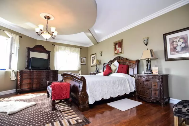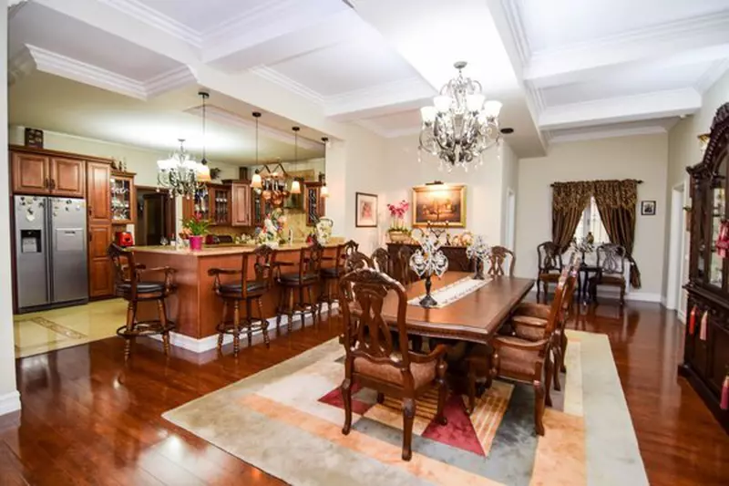 Eleganța proprietății este data de jocul de culori și de îmbinarea texturilor care îndulcesc sobrietatea mobilierului din lemn masiv și creează o ambianță primitoare și caldă', potrivit anunțului publicat pe Imobiliare.ro.