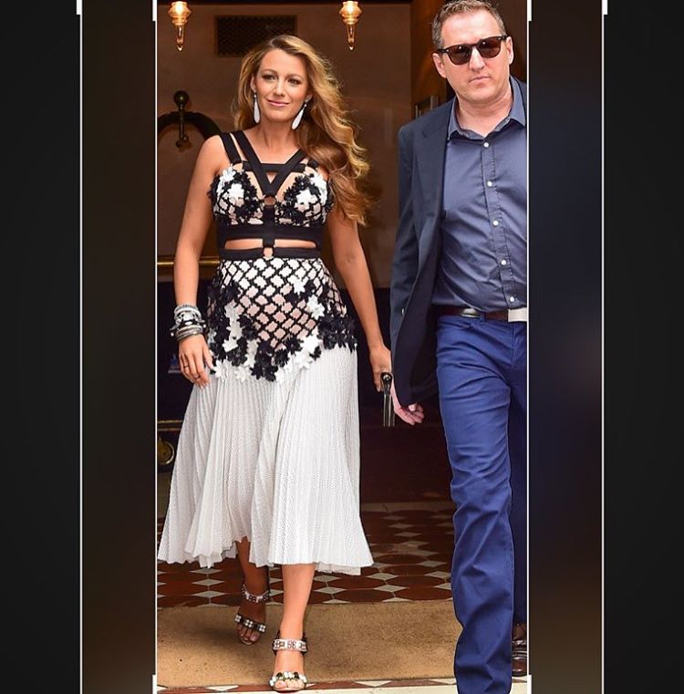 Blake poarta o rochie Carolina Herrera si pantofi Christian Louboutin
