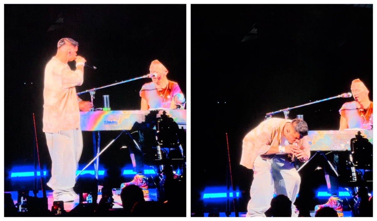 Concertul a fost gândit să fie cât mai complex, cu energie, pozitivitate și vibe bun, iar asta s-a văzut în fiecare piesă cântată. Dincolo de muzica în sine, a fost un show all love, despre acceptare, susținere și integrare. Practic, despre cum să fim mai buni. Undeva pe la jumătatea spectacolului, Chris Martin, solistul trupei britanice, i-a făcut o surpriză unei tinere din public, aducând-o lângă el pe scenă și cântându-i piesa ei preferată. Imediat apoi, artistul l-a prezentat pe invitatul special, despre care a avut doar cuvinte de laudă.
