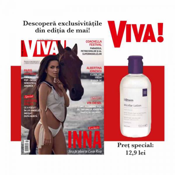 VIVA! de Mai este diponibilă, din 1 mai, la chioșcurile de ziare din București și din țară. Poți cumpăra revista și împreuna cu un cadou, la numai 12,9 lei: loțiune micelară Ivatherm.