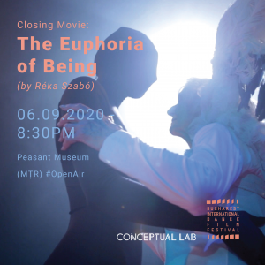 Duminică, 6 septembrie, la 20:30, la Cinema Muzeul Țăranului Român, va avea loc, în închiderea ediției cu numărul 6 a Bucharest International Dance Film Festival, proiecția primului lungmetraj al regizoarei Réka Szabó (HU) - The Euphoria of Being - eveniment susținut de "Conceptual Lab by Theo Nissim."