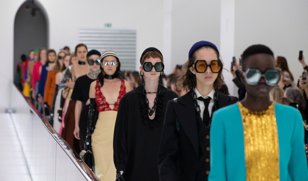 Gucci și-a prezentat colecția pentru primăvara lui 2020, cu un ansamblu de 21 de modele defilând înainte de prezentarea propriu-zisă în cămăși de forță. Explicabil, un model a protestat chiar pe podium.