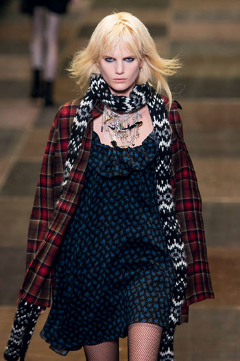 Imediat ce au fost disponibile imagini din show-ul Saint Laurent de toamna-iarna 2013, Internetul a explodat. Toata lumea il acuza pe Hedi Slimane de infantilism, fanele lui Yves Saint Laurent se plangeau ca inca un mit a fost distrus etc. Nu am sa fac acum o analiza a acestei colectii. Am vorbit despre asta la timpul potrivit. Ce mi-a atras atentia, in schimb, a fost noua euforie grunge, de care este responsabil insusi Hedi Slimane.