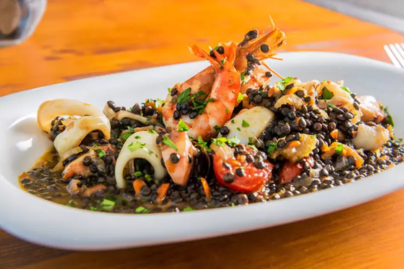 Printre felurile de mâncare pe care noi le-am încercat by the book, că să spunem așa, din meniu, vă recomandăm bruschetele cu fructe de mare, parmigiana cu roșii și vânătă, caracatiță pe pat de cartof copt-prăjit capere măsiline și rosii cherry, linte neagră Beluga cu fructe de mare sau pastele cu fistic și creveți.