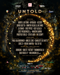 Primii trei dj ai lumii, Dimitri Vegas&Like Mike, Martin Garrix, David Guetta revin la Untold alături de: The Script, Above and Beyond, Afrojack, Alesso, DJ Snake, Steve Aoki, Lost Frequrencies live, Paul Kalkbrenner, Tale of Us, Cirez D, Borgore, Dub FX, Borgore, Rudimental DJ și Netsky.