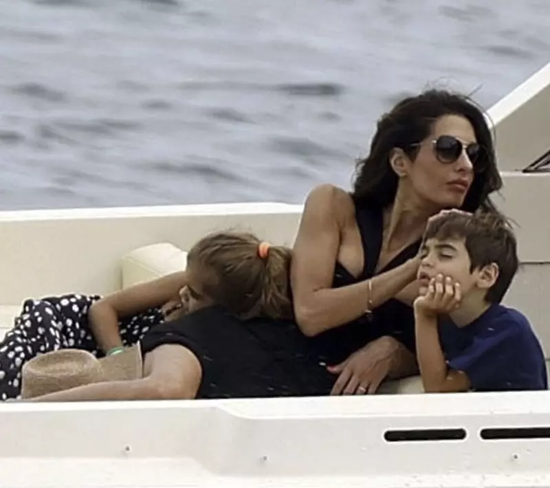 Cei patru păreau că se simt extrem de bine împreună și că profită la maximum de plimbarea relaxantă cu barca, paparazzi surprinzându-i pe George și pe soția acestuia ținându-i în brațe pe gemenii lor în vârstă de șase ani.