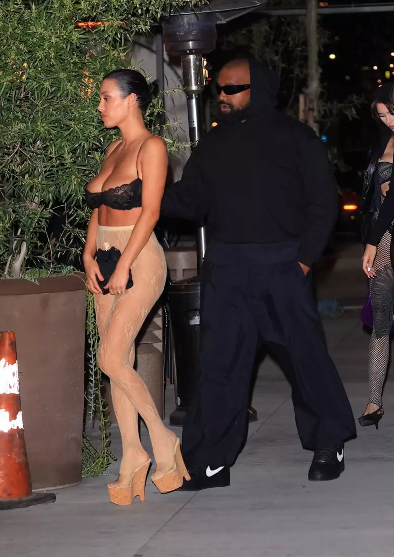 Bianca Censori pare că nu poate rezista unei ținute doar cu dresuri, dar și-a schimbat stilul, trecând de la ciorapi transparenți la un look din dantelă pentru a ieși la cină cu soțul ei, Kanye West, în Los Angeles, joi seara.