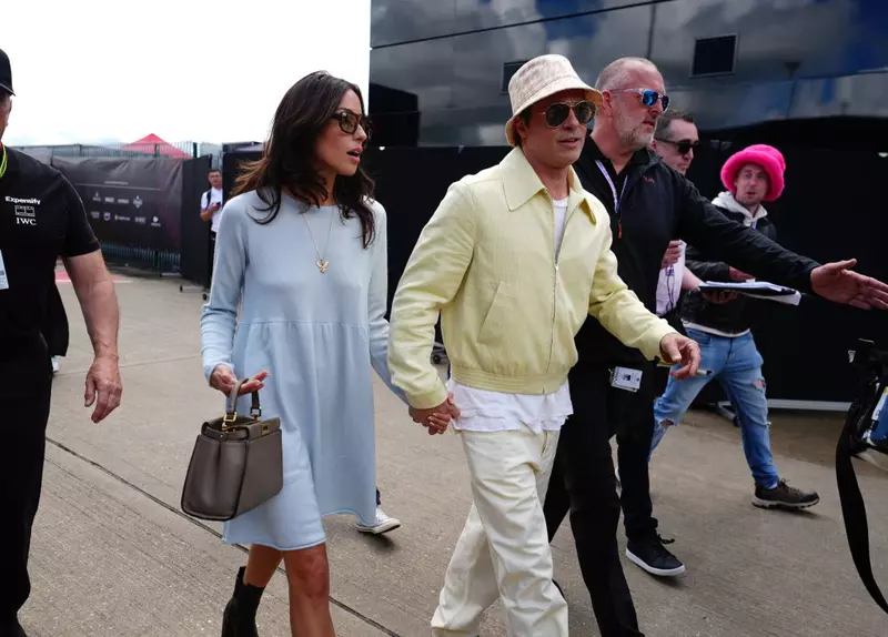 Apariția rar întâlnită a cuplului la cursă, câștigată de pilotul Mercedes Lewis Hamilton, a avut loc la două zile după ce Formula 1 și Apple Original Films au anunțat titlul viitorului film al lui Pitt, „F1”. În drama sportivă, actorul îl interpretează pe Sonny Hayes, un pilot fictiv care este forțat să se retragă după ce a avut un accident grav în anii 1990.