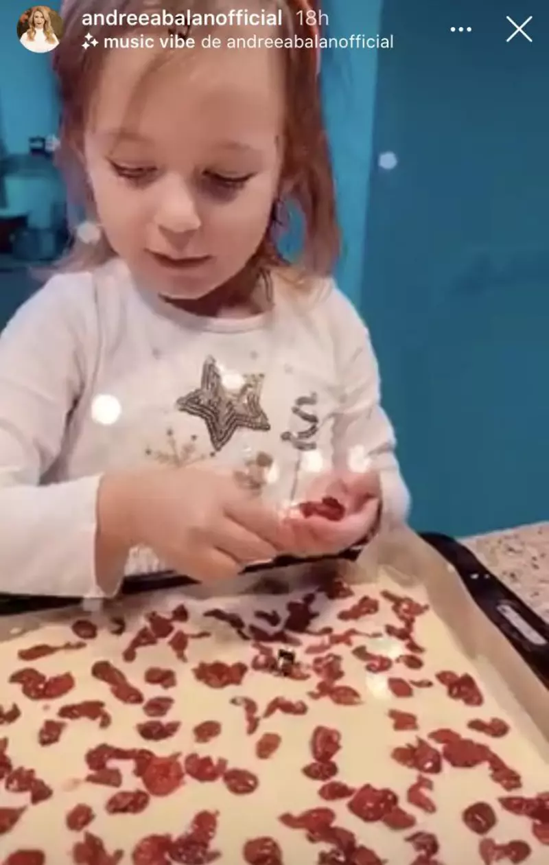 Ulterior, artista le-a arătat fanilor cum și-a petrecut timpul alături de cele două fetițe ale sale: au făcut puzzle-uri cu personajele din filmul de desene animate Frozen și au pregătit o prăjitură. „Sărbătorim venirea acasă cu o tartă cu vișine”, spune Andreea arătându-le fanilor cum fiicele ei au ajutat la pregătirea desertului.