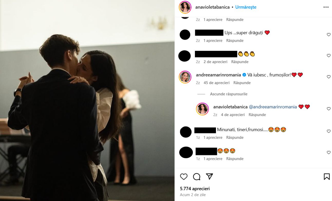 Cum a reacționat Andreea Marin după ce fiica ei, Violeta, a publicat o imagine într-o ipostază tandră cu iubitul ei