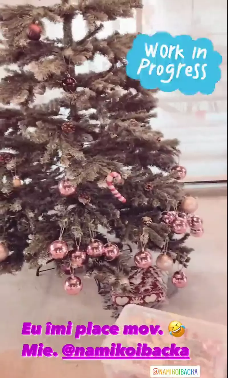 „Deci s-a decis. Culorile în care împodobim sunt mov și auriu. Namiko repetă în repetate rânduri că o să împodobească singură bradul, ceea ce înseamnă că o să avem globulețe doar în partea de jos a pomului”, a spus actrița pe Instagram.